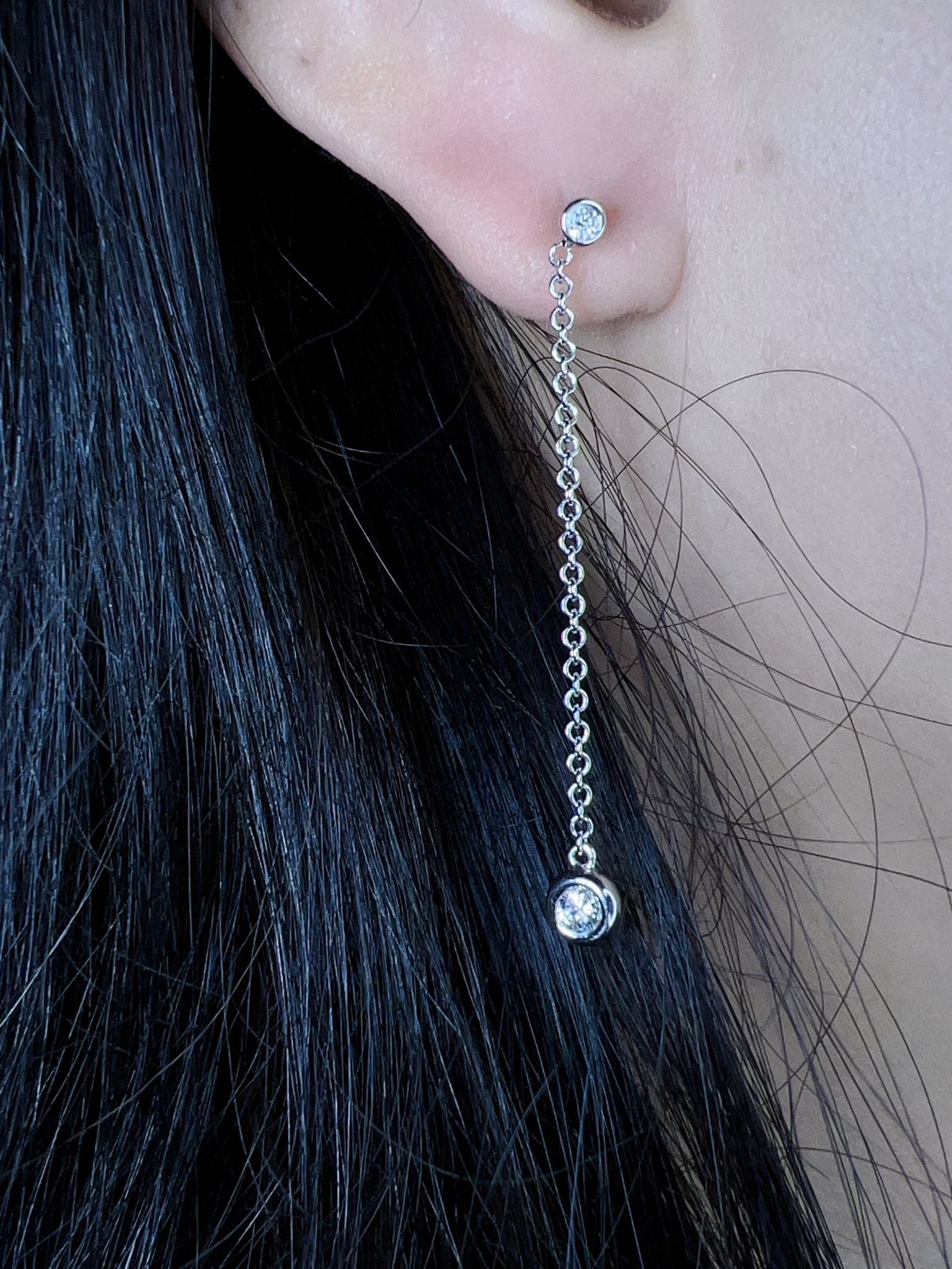 18K White Gold 0.24ct Natural Diamond Dangle Earring Pair