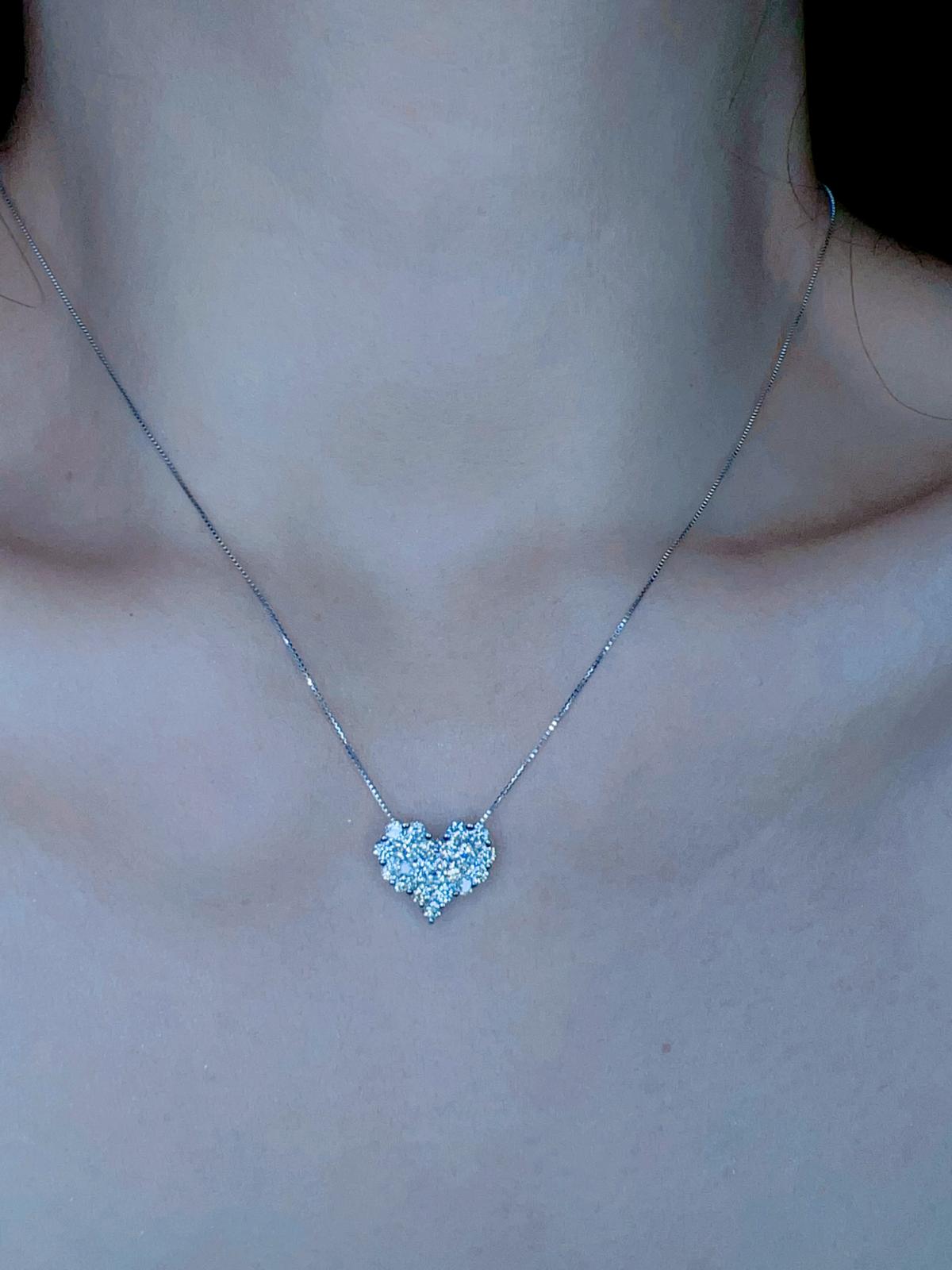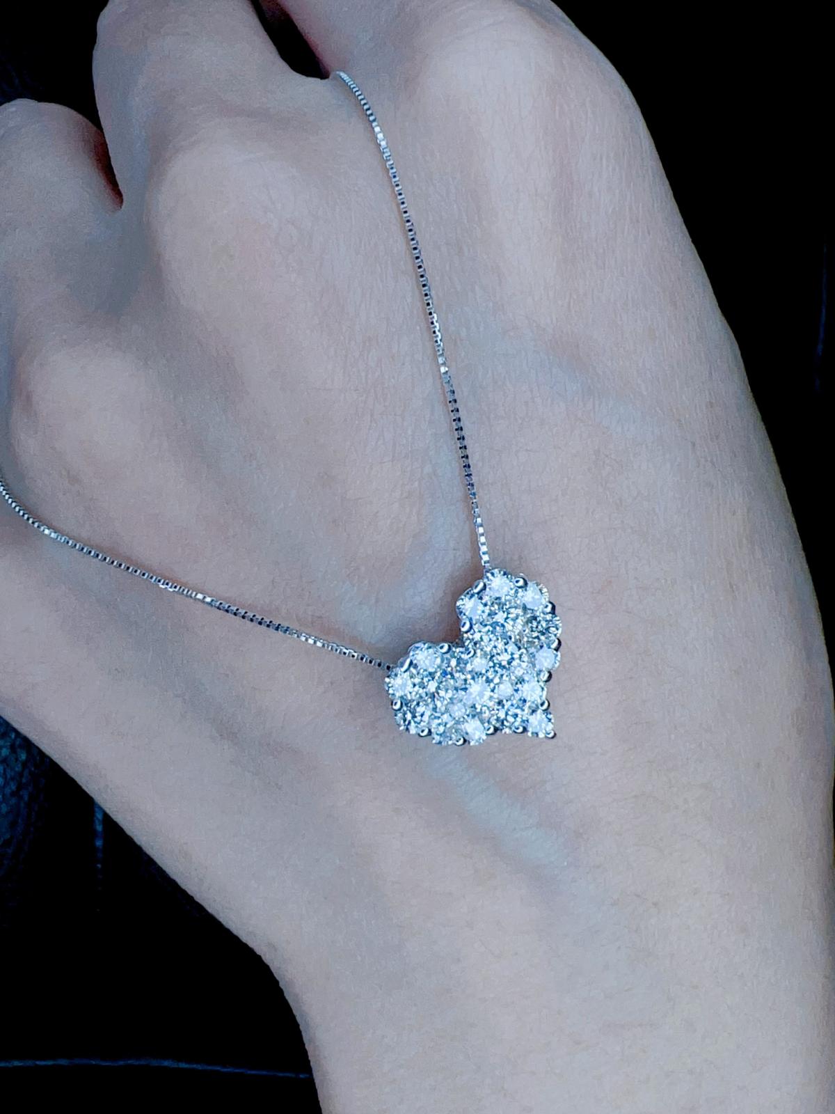 18K White Gold 1.00ct D Color Natural Diamond Heart Pendant