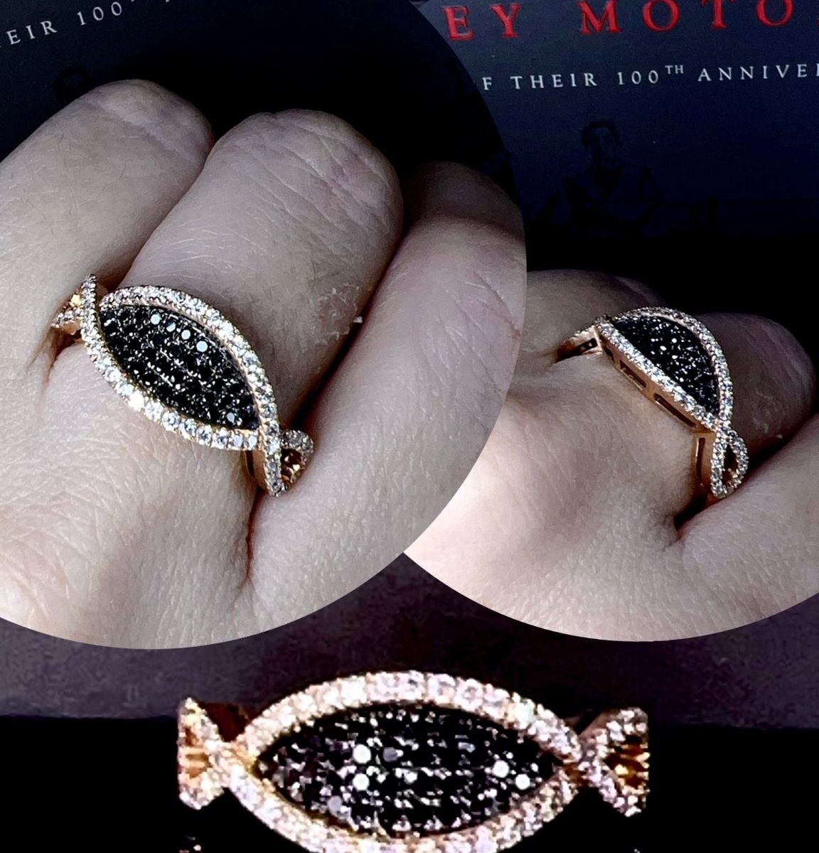18K Rose Gold 0.53ct Natural White Diamond with 0.23ct Natural Black Diamond Ring