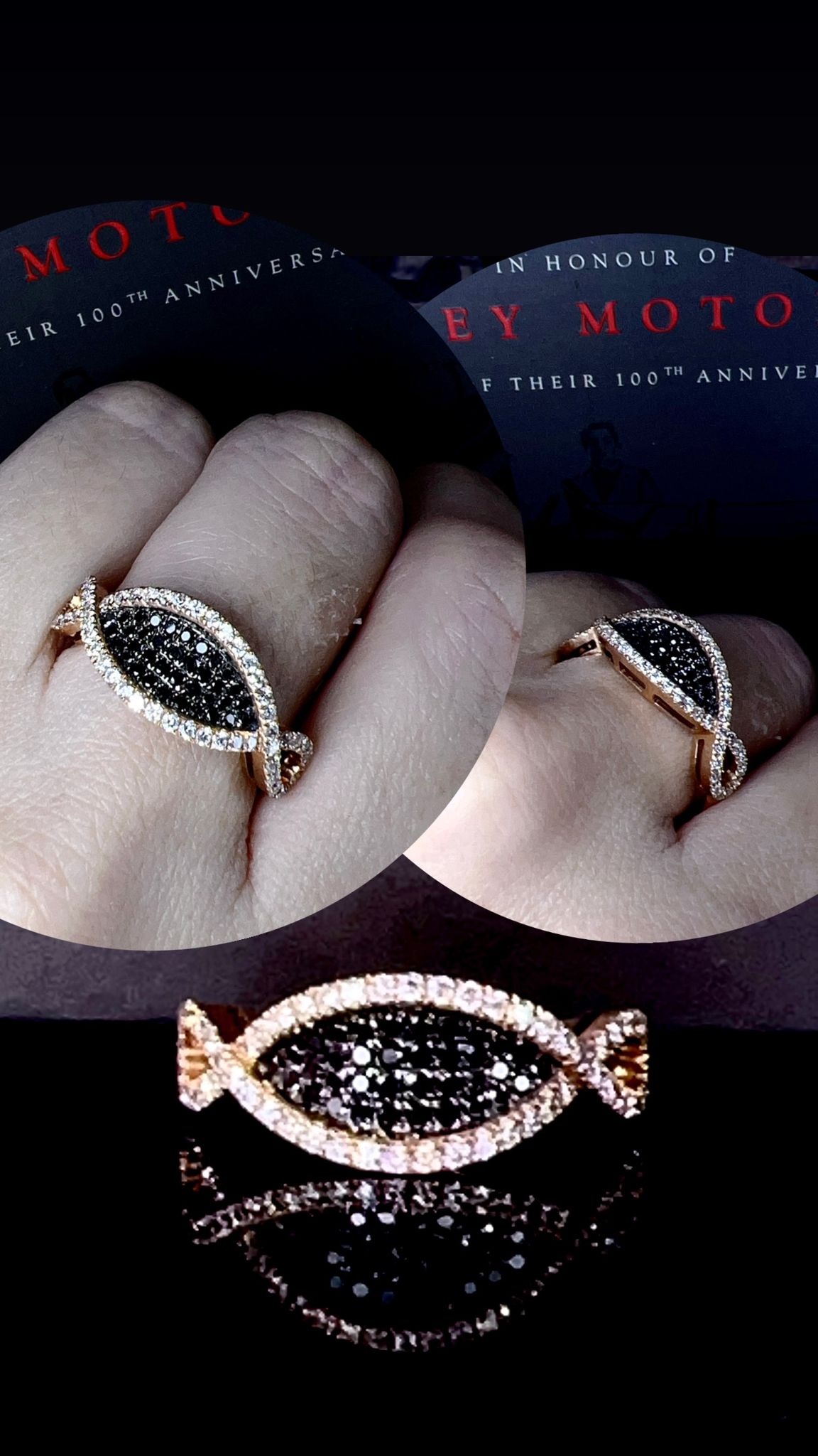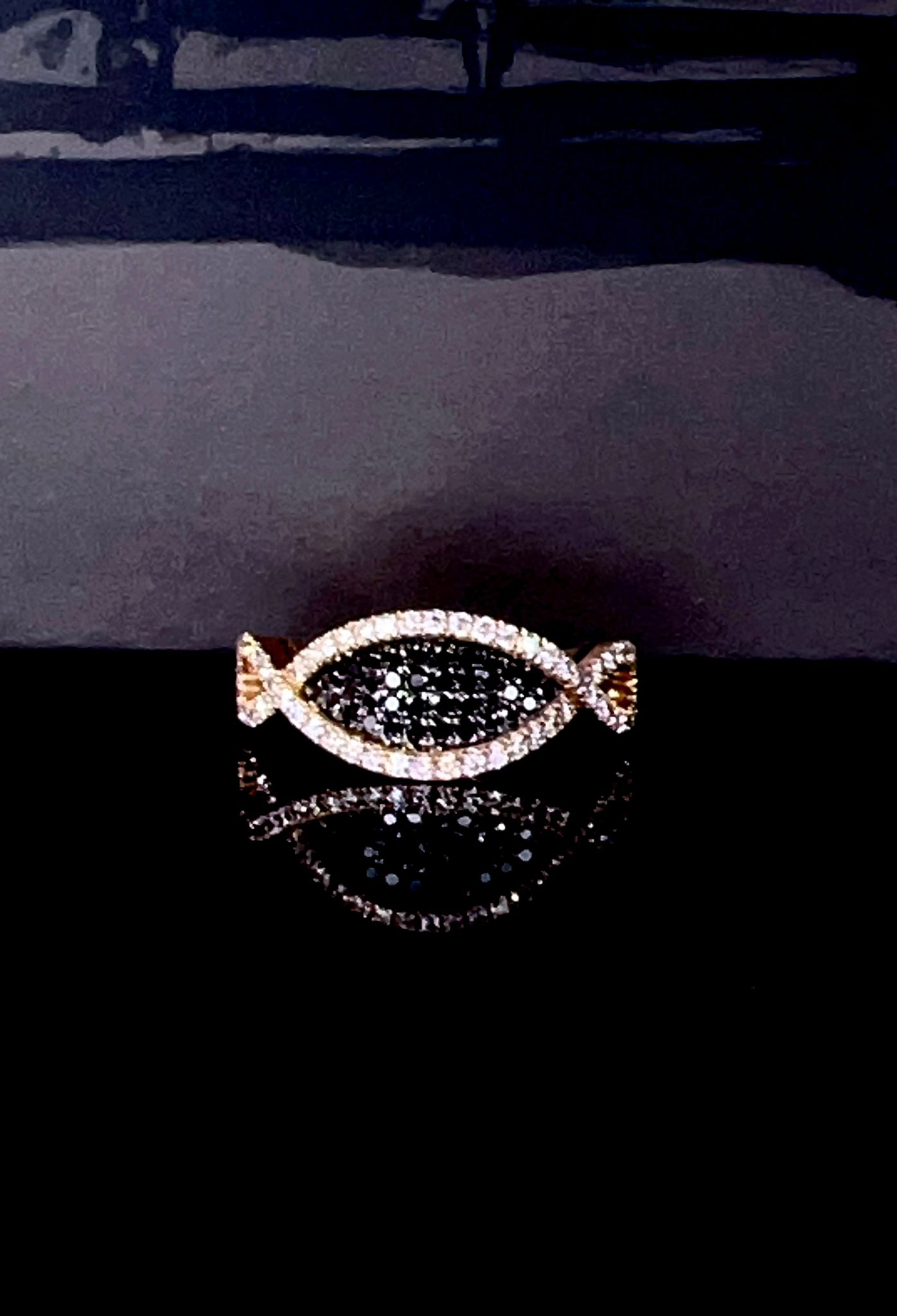 18K Rose Gold 0.53ct Natural White Diamond with 0.23ct Natural Black Diamond Ring